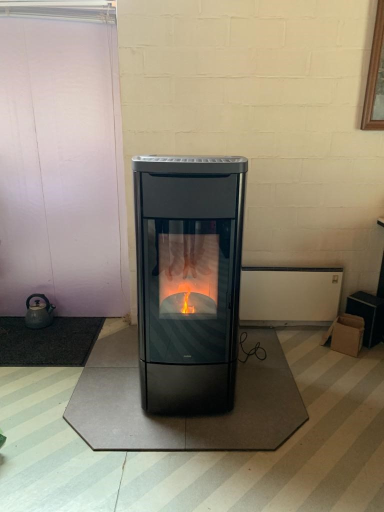 Pose d'un poêle à pellets Palazzetti Lia à Flémalle près de Engis